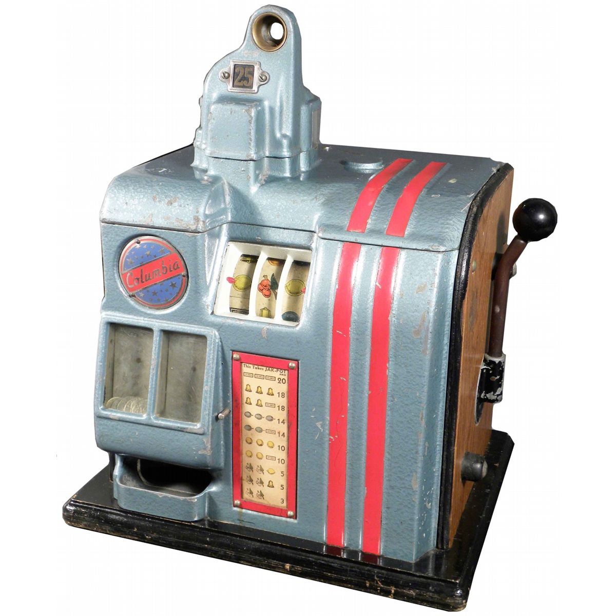 Columbia 25 Cent Slot Machine. Excellent original working condition. 16 X 18 1/2 X 12 inches, comes with keys.