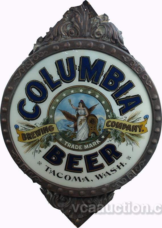 Columbia Beer Brewing Co.Tacoma, WASH. Reverse Glass Sign In Metal Frame, All Original (One Of A Kind) - 20" x 28"
