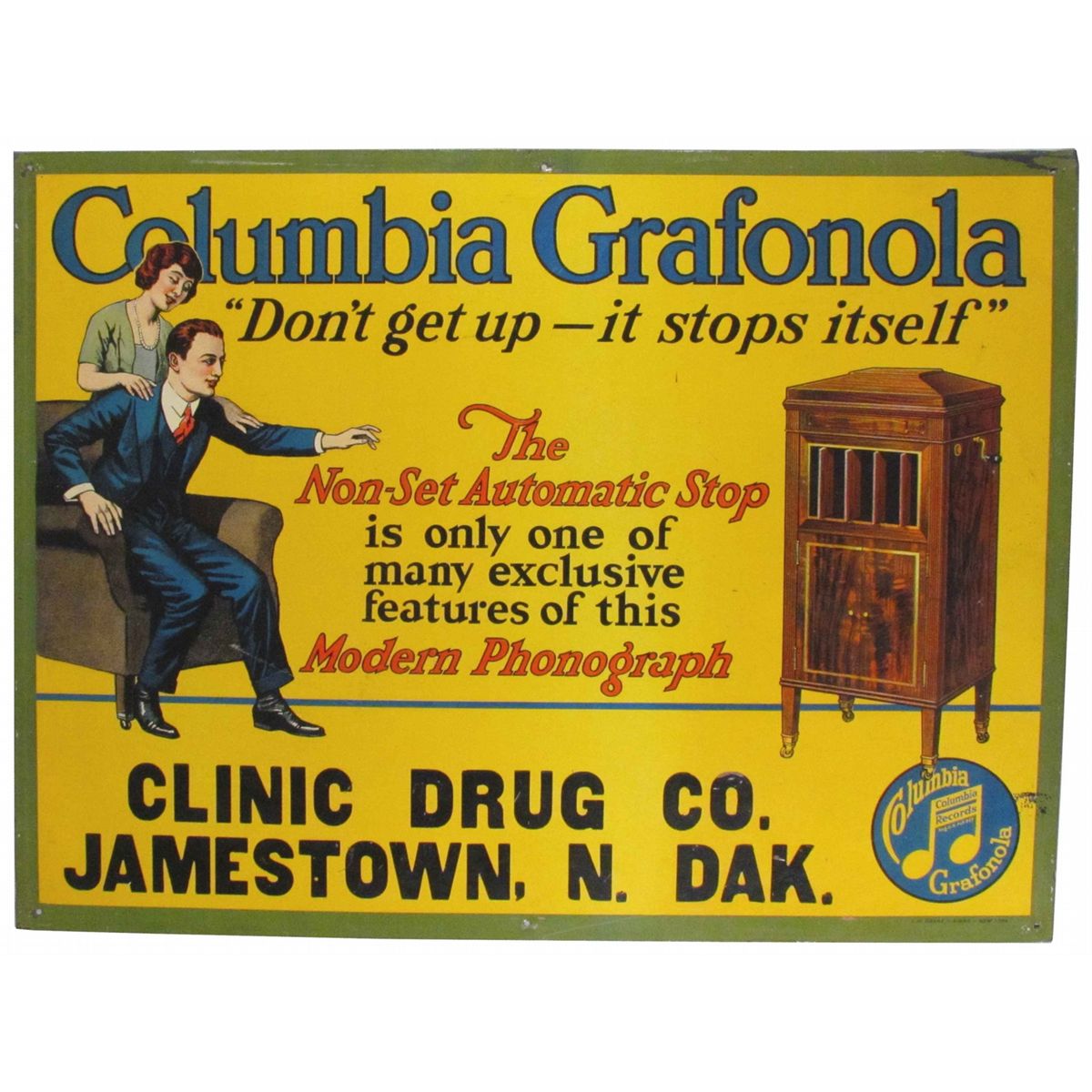 Columbia Graphonola Tin Sign. Great color and graphics. Excellent condition. 23 3/4 X 17 3/4 inches.