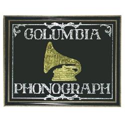 Columbia Phonograph sign, reverse on glass glue chip w/silver & gold leaf, professionally framed in newer heavy wood frame, Exc. condition & quality, 32"W x 25"H.