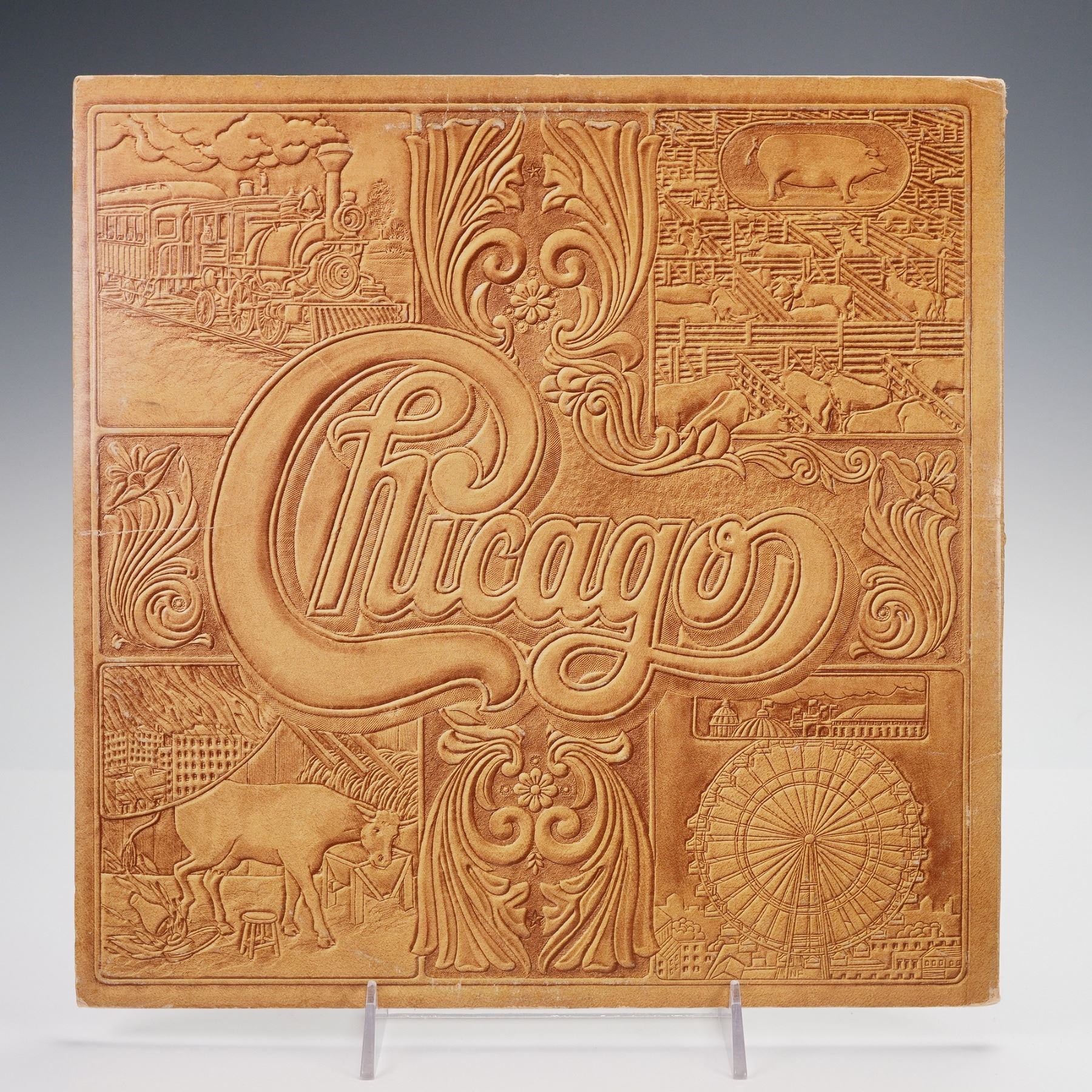 This 12-inch vinyl LP is the 1976 release "Chicago X" by the American rock band Chicago, issued by Columbia Records, playing at 33 1/2 revolutions per minute. The album is housed in a distinctive embossed gatefold cover designed, featuring ornate and stylized relief illustrations that depict scenes emblematic of Chicago's historical and industrial past, including livestock yards, railroads, a Ferris wheel, and pastoral iconography. The inner sleeve and center label replicate this intricate artwork, complementing the album's visual theme. "Chicago VII" includes singles like "Devil's Sweet", "Life Saver", "Wishing You Were Here", and much more.