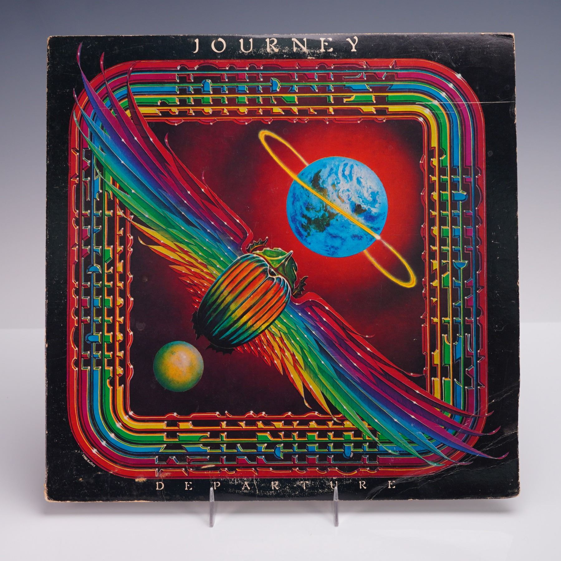 Original 1980 pressing of Journey's studio album Departure, issued by Columbia Records. Housed in its vibrant gatefold sleeve featuring the iconic winged scarab artwork with interstellar themes, this album showcases the band's signature melodic rock sound during the height of their commercial success. The record includes appearances by core members Steve Perry, Neal Schon, Ross Valory, Steve Smith, and Gregg Rolie, with track highlights such as "Any Way You Want It," "Walks Like a Lady," and "Good Morning Girl." The LP label bears the Columbia red and black branding.