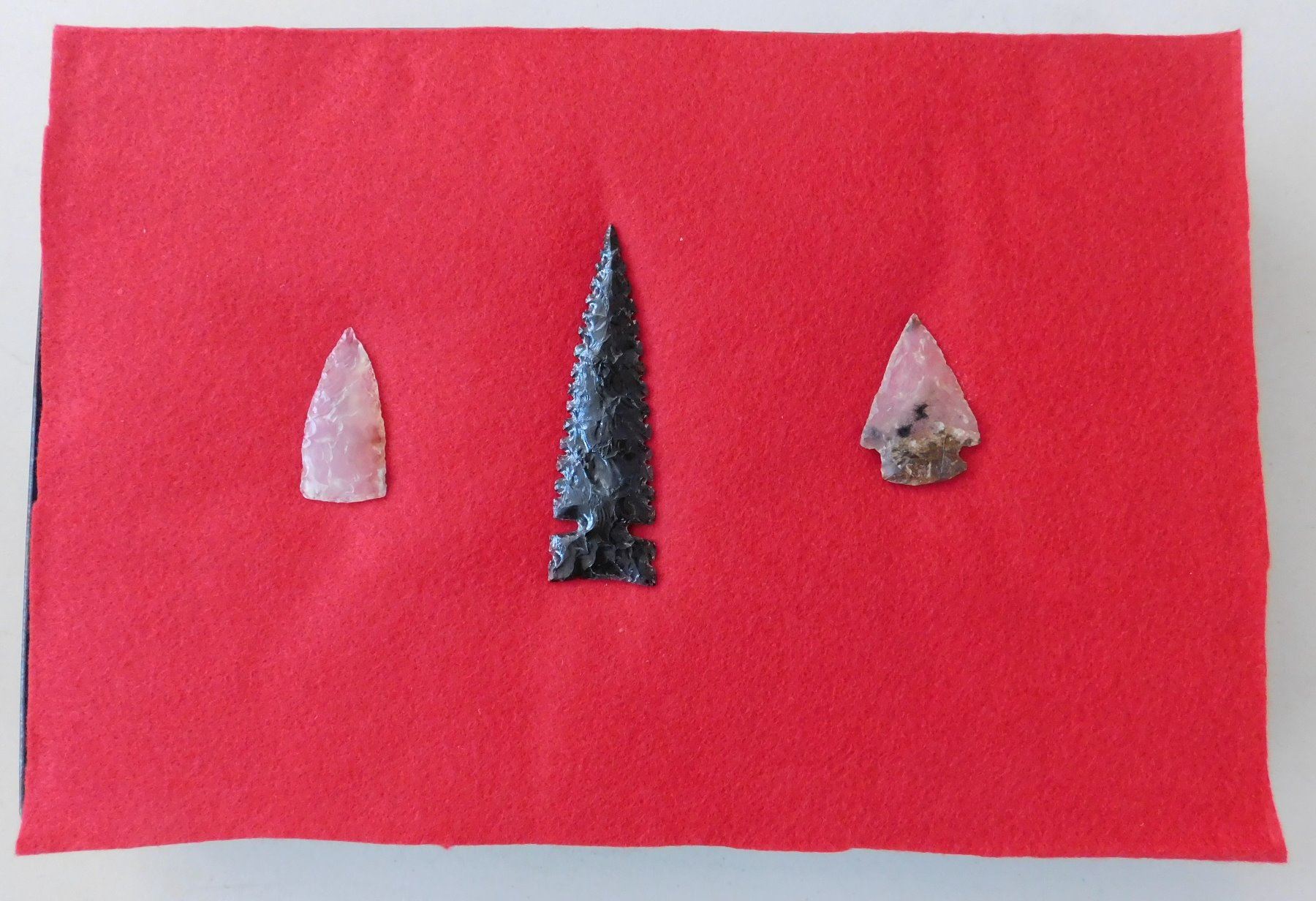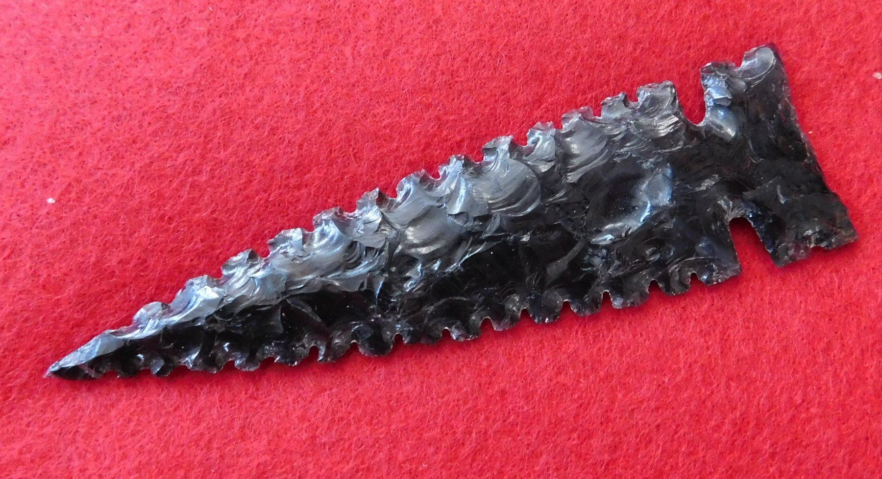 Columbia River Flint Collection, pre-historic items. Made of obsidian and agate, the items measure from 1 3/4" to 3 5/8". Columbia River, near ocean. Frame not included. Nice serrations. Condition: Good, see images. Shipping: $26.50 w/insurance and signature.