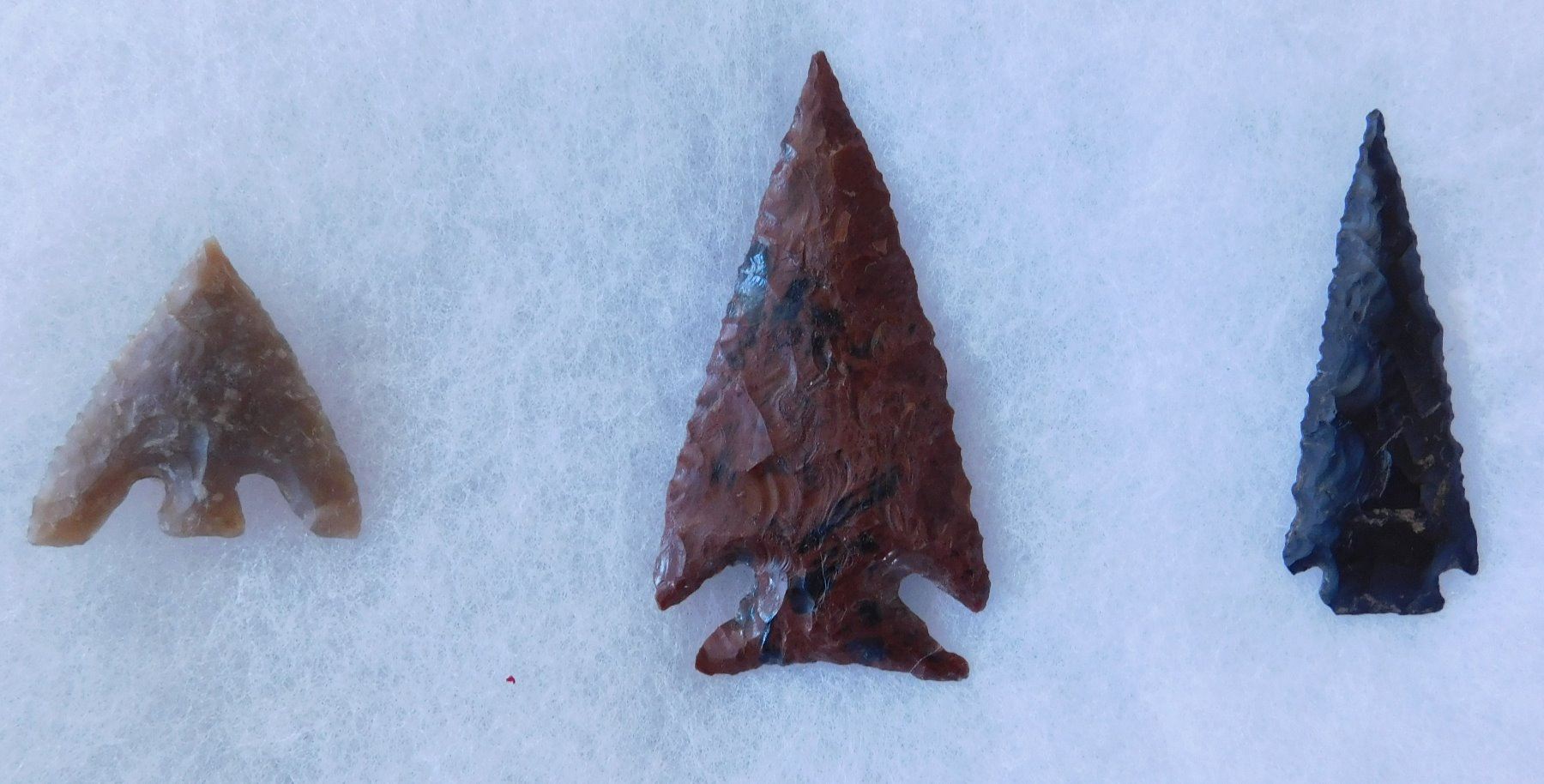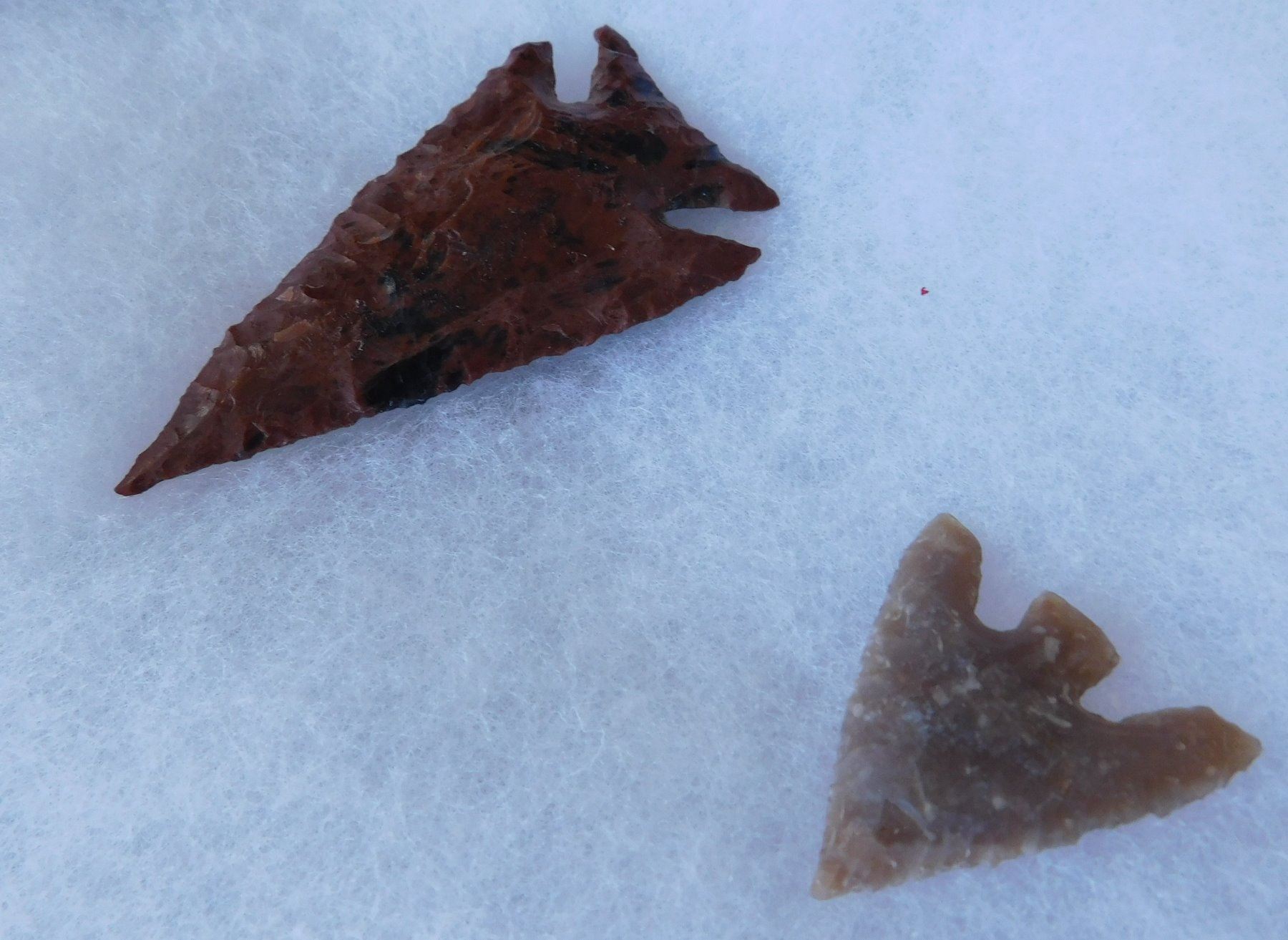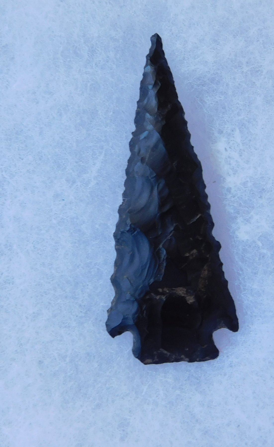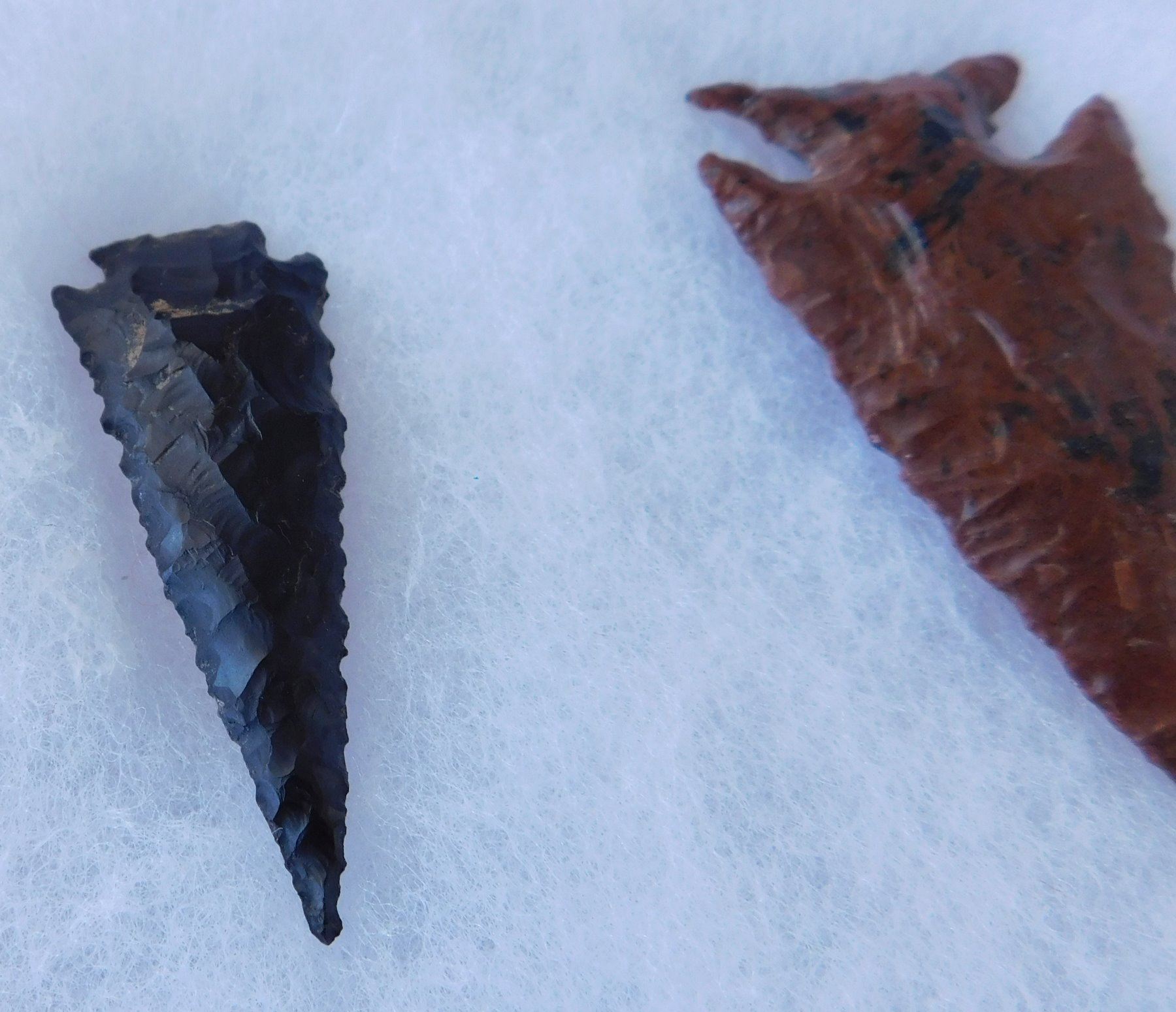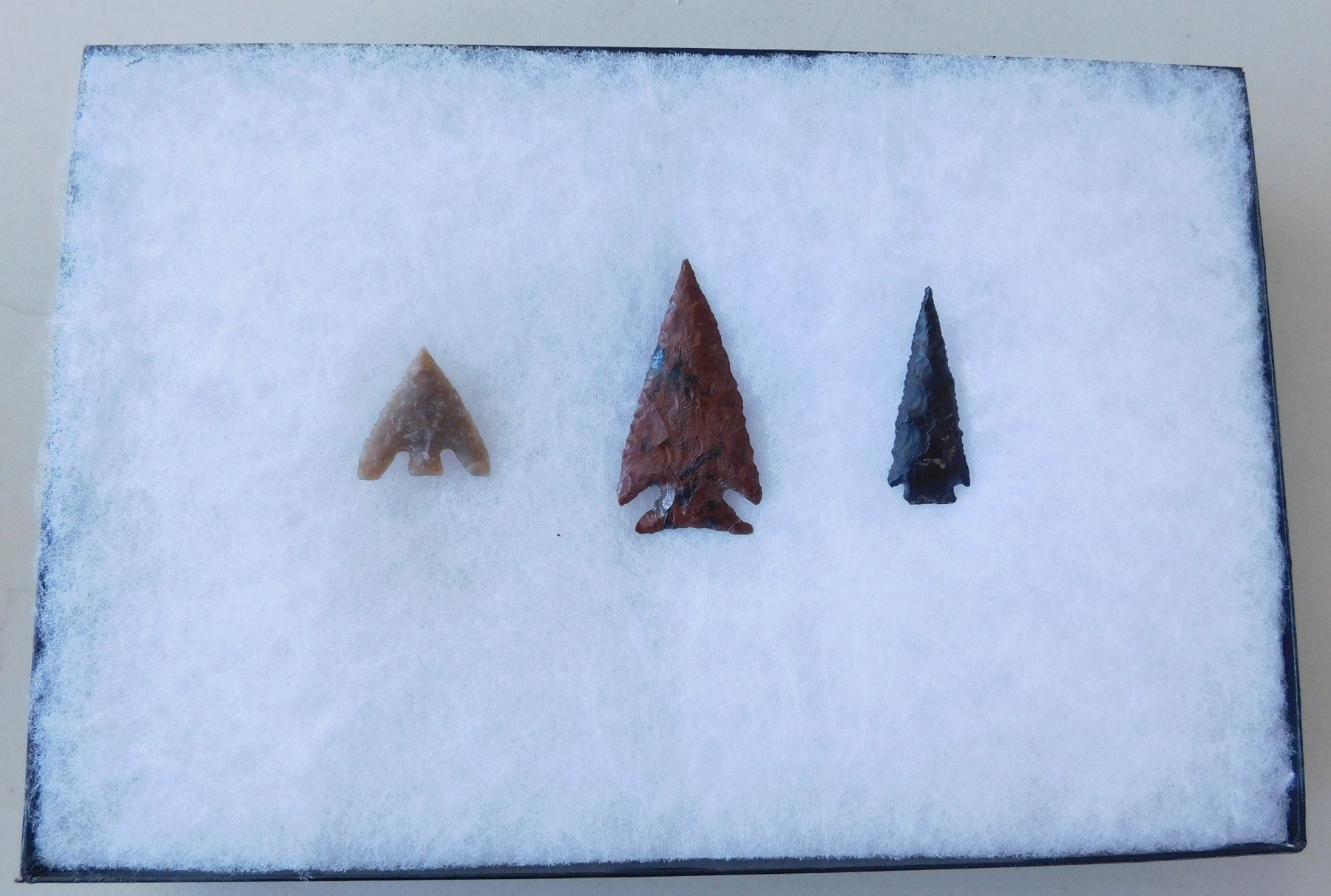 Columbia River Flint Collection, pre-historic items. Made of flint and obsidian, the items measure from 1 1/4" to 2 3/4". Columbia River, near ocean. Frame not included. Condition: Good, see images. Shipping: $26.50 w/insurance and signature.