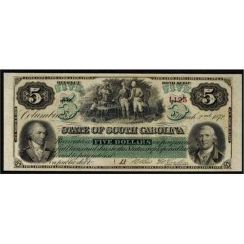 Columbia, SC. March 2, 1872. $5. Superb Gem New