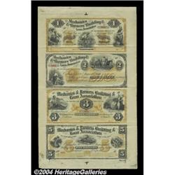Columbia, SC- Mechanics & Farmers Building & Loan Association $1-$2-$3-$5 Aug. 1, 1873 Sheheen 344-345-346-347 Uncut SheetA colorful and now quite scarce uncut sheet, with each of the single notes now going for $200 to $300. Extremely Fine, with a few folds, but still most attractive. <BR><BR><B>Important notice:</B> Heritage usually auctions material at the rate of 200-250 lots per hour. On some occasions eBay Live bid software or the Internet may not be able to keep up with the pace of the auction. We recommend placing a realistic absentee bid now as insurance to avoid disappointment. Occasionally the auctioneer may eliminate or reject an eBay Live bid, and the auctioneer may also reopen a lot after the close of the eBay live bidding (usually because we missed an audience bid), and may reject your bid even if it shows you as the winning bidder. By bidding via eBay Live, you agree that Heritage may award the lot to another bidder at its sole discretion under the circumstances described above or any other reasonable circumstances. Since eBay bids are not shown to us until we open the lot on the floor, we treat those bids just like floor bids. In most cases the floor responds before the eBay bid is presented to us, due to Internet lag time, so for consistency we have made it a policy that floor bids are always considered first over tie eBay live bids. Also please note that all Heritage lots purchased through eBay Live carry a 20% Buyer's Premium. Please make sure you read the Terms and Conditions before you bid. <BR><BR><B>IMPORTANT ANNOUNCEMENT ABOUT RESERVES:</B> Heritage now divulges all reserves on its web site 7 days before every auction. If you want to know whether the reserve on this lot has been met, and if not, what the reserve amount is, please visit this lot page on the HeritageCoin.com web site, or email: bid@HeritageGalleries.com