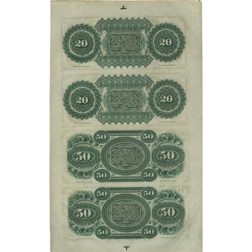 <B>Columbia, SC-State of South Carolina</B></I> $20-$20-$50-$50 March 2, 1872 Cr.7-7-8-8 Sheheen 14-14-15-15 Uncut Sheet<BR> These gorgeous uncut sheets just don't appear in sales as much anymore, most likely due to being cut up into singles. A tiny corner fold is noticed, but still overall this is a beautiful <B>Choice Crisp Uncirculated </B></I>sheet.<BR><BR><b>Shipping:</b> Coins & Currency (<a target="_blank" href="http://www.heritageauctions.com/common/shipping.php">view shipping information</a>)