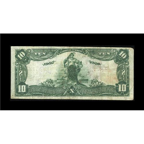 <B>Columbia, TN</B></I> - $10 1902 Date Back Fr. 617 <B>The Phoenix NB</B></I> Ch. # (S)7870<BR>Though about a dozen large size notes are known from this institution, only one other can compare in quality to this note, a lone EF. While we have not handled that particular example, we must boast of the attributes of this piece, which may ultimately be as fine or better once both are compared. This note is wholly original with blue stamped signatures remaining. Fold counters would ultimately restrict us from solely using the higher of the split grade <B>Very Fine-Extremely Fine.</B></I> This note was clearly hand cut from the sheet as it is very close at top and is so wide it includes part of the consecutive note in the selvage.