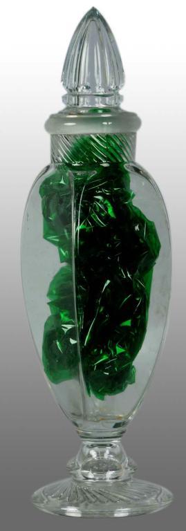 Ground lid with a quarter-inch ground chip to jar top. Jar has no cracks or scratches but has one panel with slight cloudiness. General Store Condition (Excellent). Size 20" T.