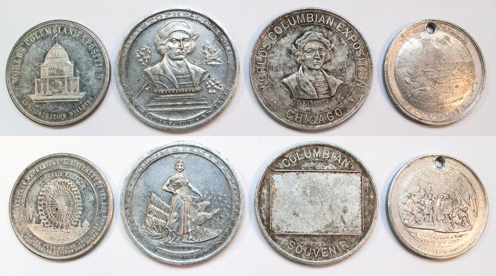 Lot of 4 different medals from the 1892 Columbian Exposition in Chicago. Although none are listed in "So Called Dollars," they are all dollar sized aluminum pieces.
