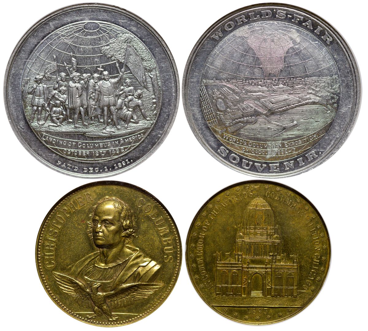 Lot of 2: 1) 1892-3 World Globe Dollar, MS62, HK-174; 2) 1893 World`s Columbian Expo Medal, MS62, E-10. HKA#62325