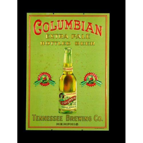 Columbian Embossed Tin Sign, Tennessee Brewing Co., Memphis, TN, a few light stains otherwise excellent condition, 10 3/4 x 13 3/4 inches.