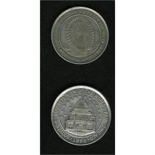 <B>Columbian World's Fair So-Called Dollar Duo.</B></I> Aluminum. Pair of Columbian World's Fair pieces, <B>HK-166</B></I> and <B>Eglit-20</B></I> (Ferris wheel).<BR><BR><b>Shipping:</b> Coins & Currency (<a target="_blank" href="http://www.heritageauctions.com/common/shipping.php">view shipping information</a>)