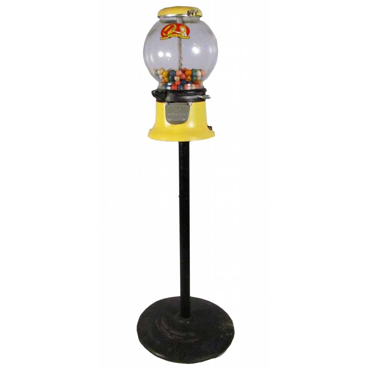 Columbus "M" Gumball Machine on stand. Excellent repainted working condition. 14 inches tall w/o stand.