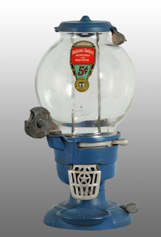 Description Working. Rare. Repainted blue and decal may be a reproduction. Includes two barrel locks with key. Condition (Good). Size 16" T.