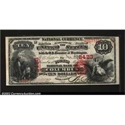 Columbus, OH - $10 1875 Fr. 419 The Fourth NB Ch. # 2423A beautiful example of this desirable type, with extraordinarily vivid colors, great signatures, and full original embossing. If the margin did not enter the design on a small portion of the top left side of the reverse, this would be an unquestioned flaming gem. Choice Crisp Uncirculated. Important notice: We expect to be auctioning lots at the rate of 200-250 per hour. Sometimes eBay Premier live bid software cannot keep up with that pace, so we strongly recommend that you place a realistic proxy bid now as insurance to avoid disappointment. Also please note that all Heritage/CAA lots purchased through eBay Premier carry a 20% Buyer's Premium. Please make sure you read the Terms and Conditions.