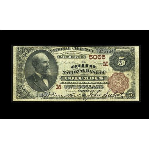 <B>Columbus, OH</B></I> - $5 1882 Brown Back Fr. 474 <B>The Ohio NB </B></I> Ch. # (M)5065<BR>This solid <B>Fine</B></I> is one of six $5 Brown Backs listed in the Kelly census from here and a nice representative of its type.