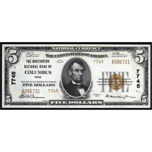 Columbus, OH. $5 1929 Ty 2. The Huntington NB. Charter #7745. Gem Crisp Uncirculated.