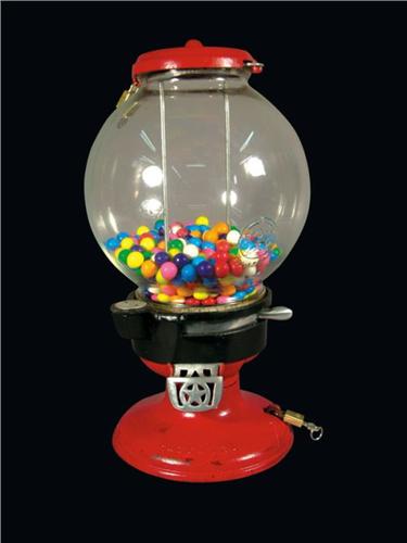 Columbus One Cent Gumball Machine, red. Good condition. 16 1/2 inches tall.