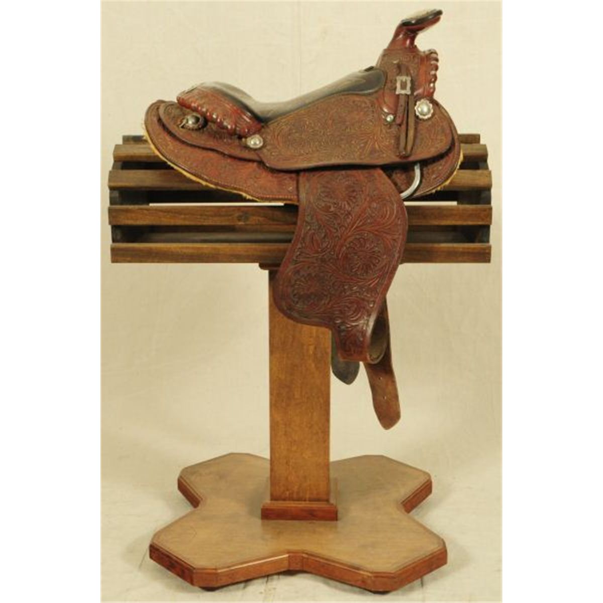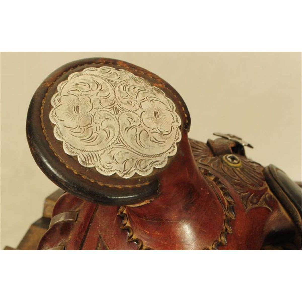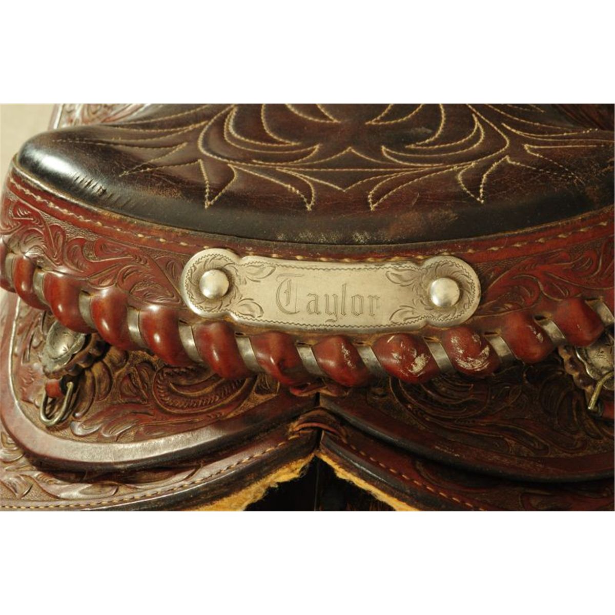 Nicely tooled with Silver Conchos, "Taylor" Name Plate on Back of Seat, Silver Concho on Horn. Marked Sterling with signed Diablo Silver Buckles. Comal Saddlery New Braunfels, Texas.