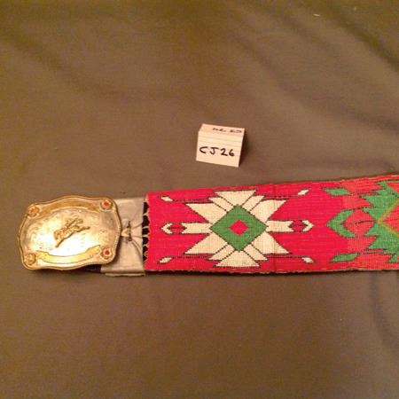 Ca. 1960s-1970s, Colorful loom beaded belt with German silver buckle. Very good condition. 32"