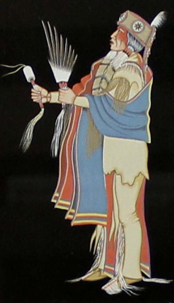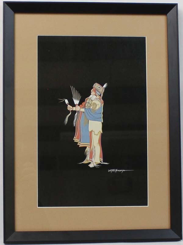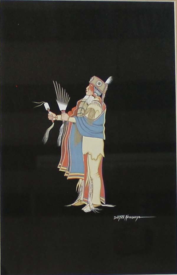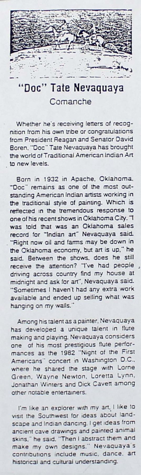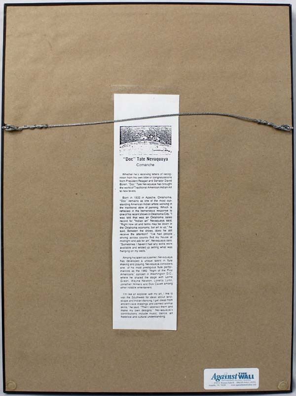 Native American Comanche Limited Edition Print ''Comanche Chanter'' by Doc Tate Nevaquaya (1932-1996), visual measures 8.5'' x 13'', overall framed measurement of 13.75'' x 18.5'', professionally framed, matted and under glass, FYI: ''A noted Comanche award winning artist and American Indian flute player Doc Tate Nevaquaya was born on July 3, 1932, in Apache, Oklahoma.''