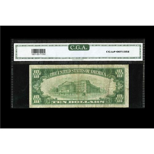 <B>Comanche, OK</B></I> - $10 1929 Ty. 1 <B>The First NB </B></I> Ch. # 6299<BR>This note should see some spirited bidding as it is possibly condition census for the bank. With only four small size known, CGA has graded this example <B>Very Fine 20.</B></I>