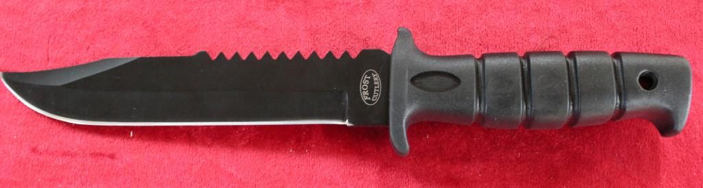 Stainless Steel Blade With Black Coating Cord Wrapped Steel Handle With Lanyard Hold. Comes With Black Nylon Sheath