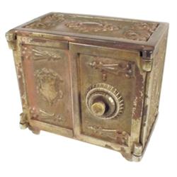 Combination lock double door safe still bank, CI, slot in back, VG condition, 6.5"W x 6"H.