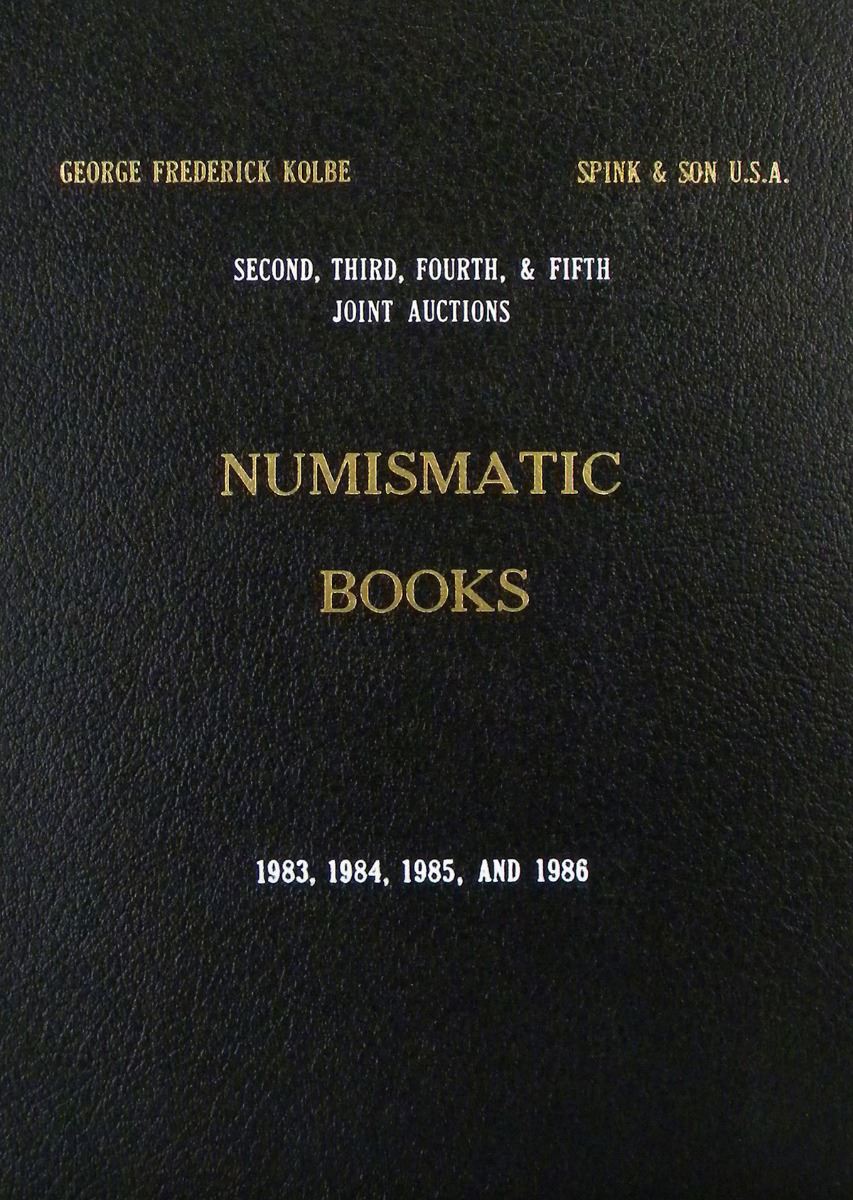 Kolbe, George Frederick, and Spink & Son. SECOND, THIRD, FOURTH, & FIFTH JOINT AUCTIONS. New York, Dec. 11, 1983; Dec. 2, 1984; Dec. 1, 1985; and Dec. 14, 1986. 4to, original black pebbled cloth, gilt; original printed card covers bound in. 45, (3); 62, (2); 37, (3); 44, (4) pages; 425; 732; 450; 500 lots; prices realized lists bound in. Fine. The combined hardcover edition of the second through fifth joint Kolbe/Spink sales (Kolbe sales 15, 19, 23 and 28). One of fewer than 30 copies thus bound.