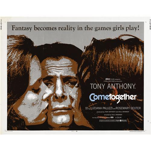 <B>Come Together Movie Posters, Group of Three (Allied Artists, 1971).</B></I> This unusual R-rated film, starring Tony Anthony, Luciana Paluzzi, and Rosemary Dexter, is prized by collectors for its soundtrack recording on Apple Records. This group includes the half-sheet (28" x 22", Very Good), one-sheet (27" x 41", Very Good-), and insert (14" x 36", Fine).