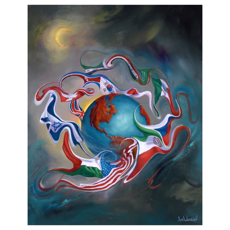 "Come Together" is an AP numbered, artist embellished limited edition giclee on canvas by Jim Warren. The piece is hand signed and accompanied by a letter of authenticity. Measures approximately 30" x 24" (image).