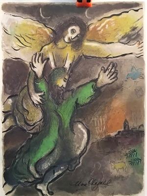 Marc Chagall Lithograph, "Ten Commandments", Marc Zakharovich Chagall was a Russian-French artist of Belarusian Jewish origin. An early modernist, he was associated with several major artistic styles and created works in virtually every artistic format, including painting, book illustrations, stained glass, stage sets, ceramic, tapestries and fine art prints.