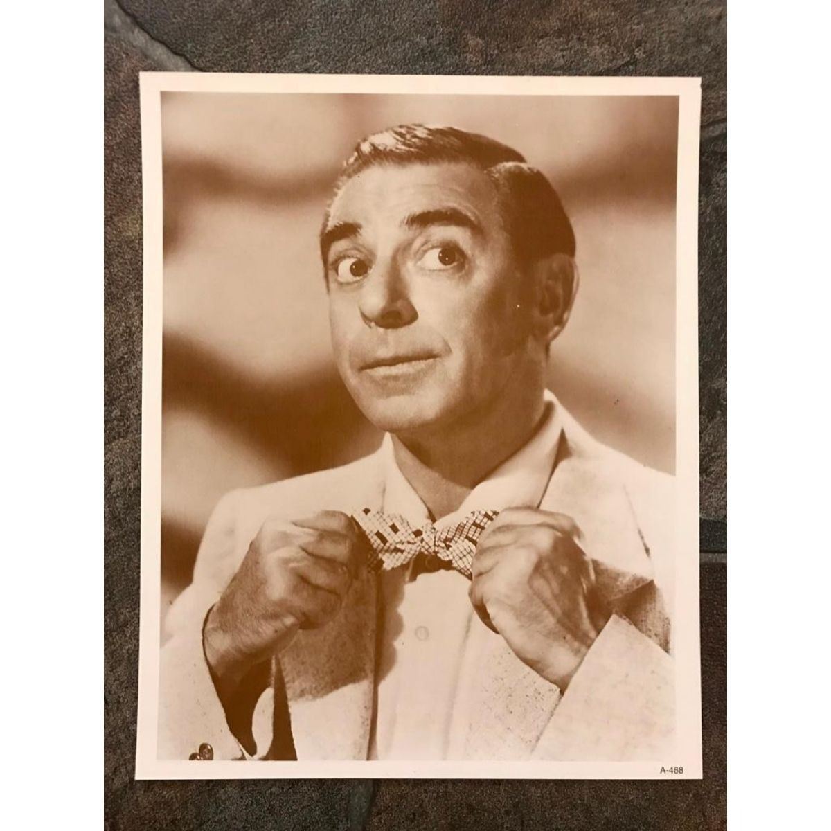Comedian, performer Eddie Cantor sepia-tone photo print. created int he early 1990's for The American Heritage Galleries. Printed on cardstock. 8" X 10". Eddie Cantor ( 1892 - 1964 )Â was an American "illustrated song" performer, comedian, dancer, singer, vaudevillian, actor, and songwriter.Â