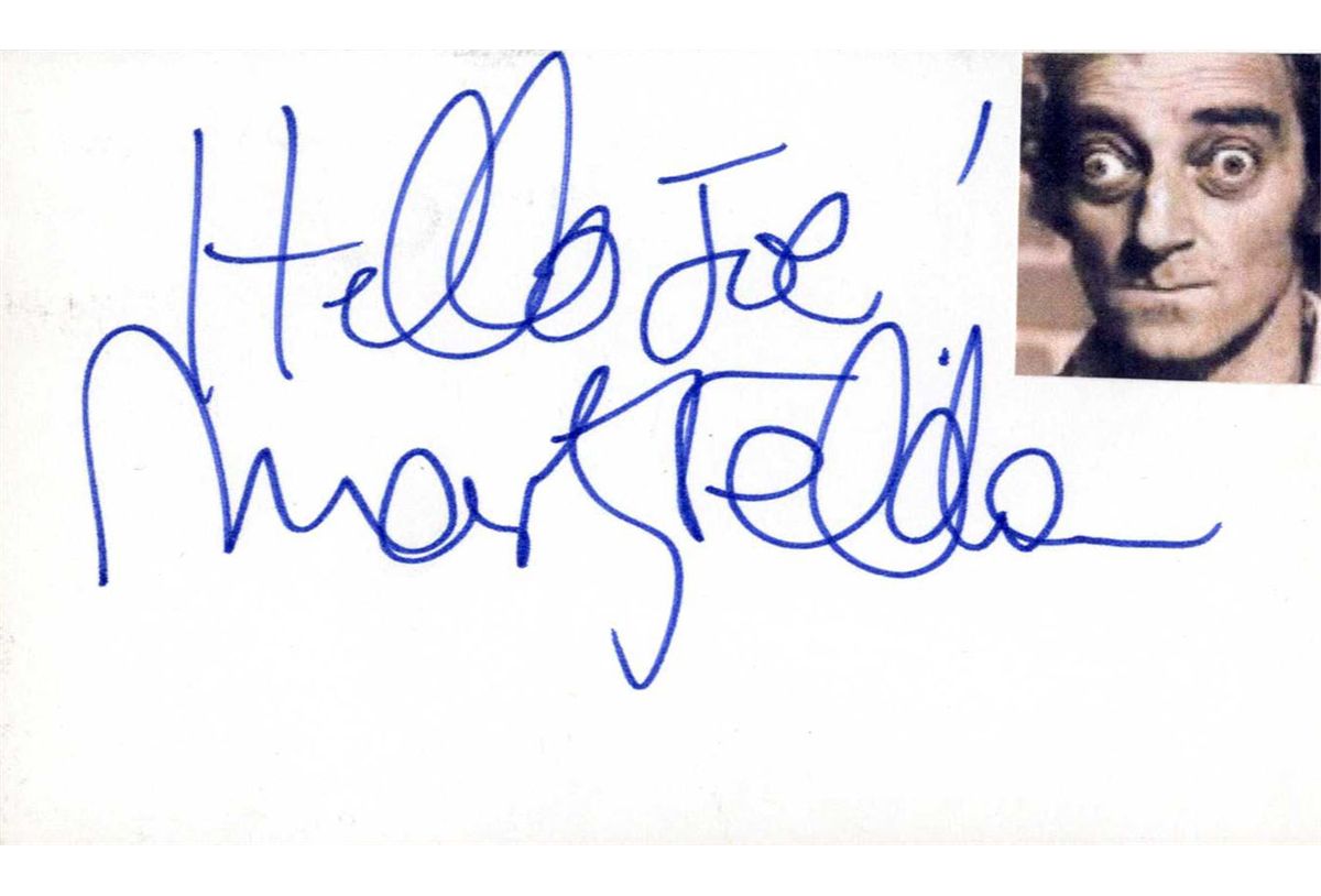 Comedian Marty Feldman Autograph -- ''Hello Joe! / Marty Feldman'' on 5'' x 3'' Card With His Photo -- Near Fine