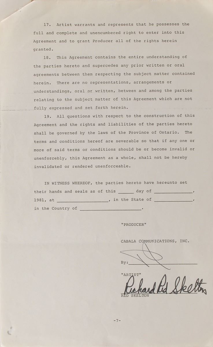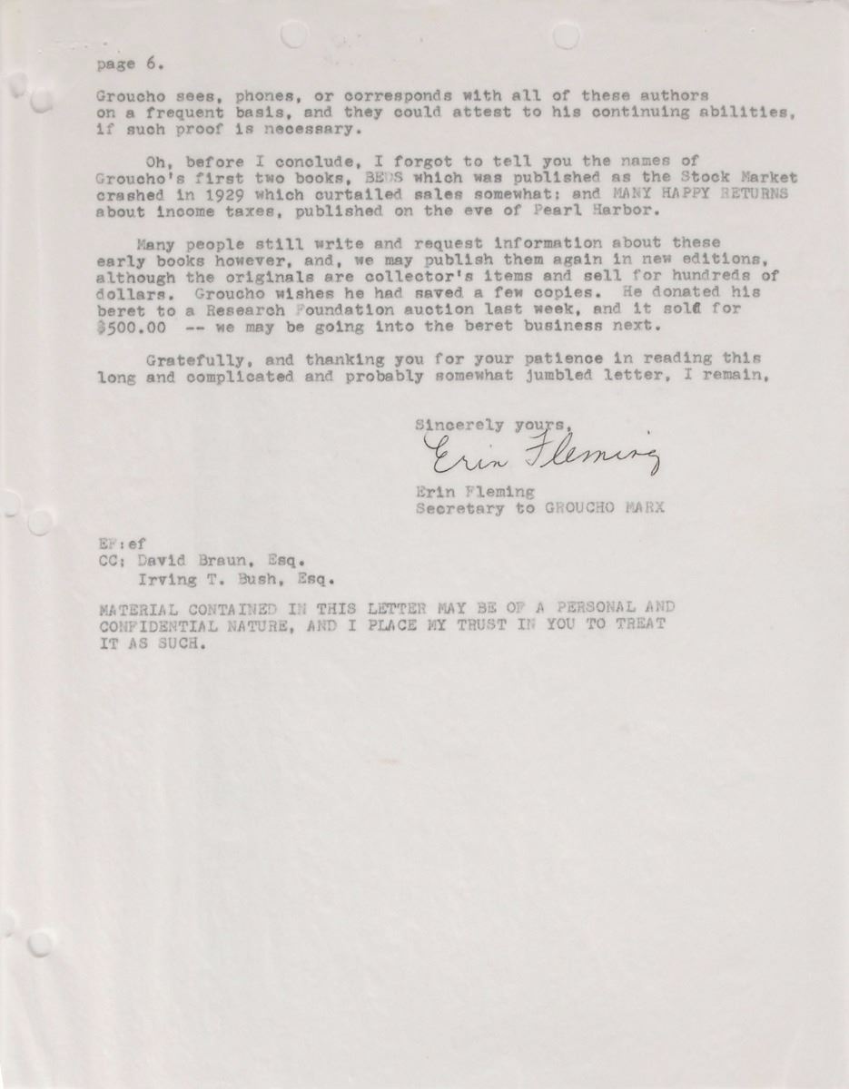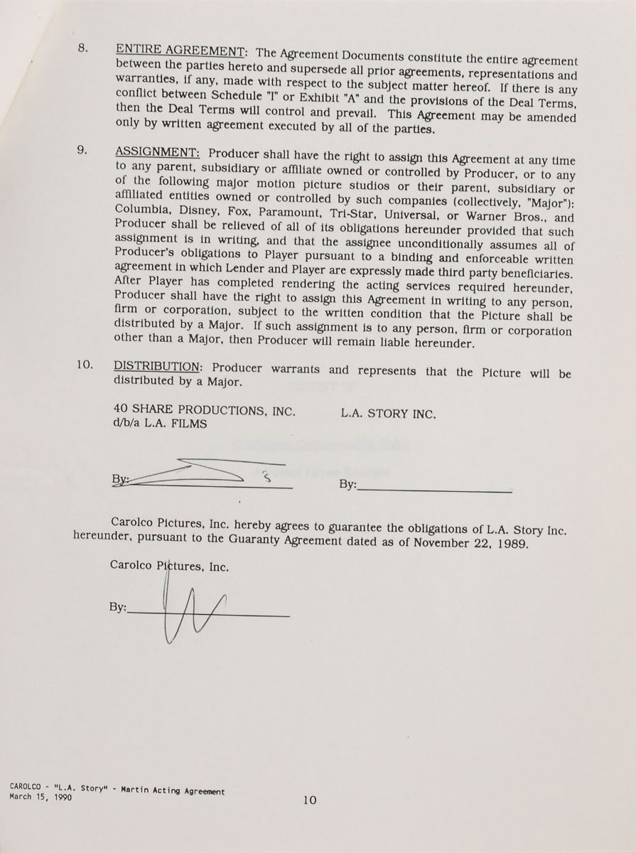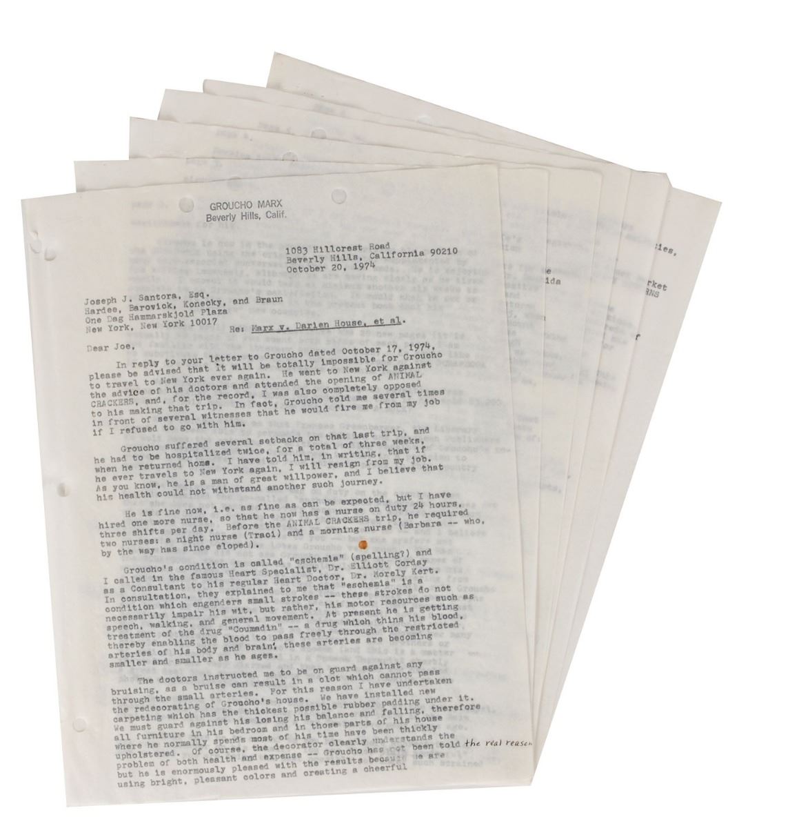 Collection of six documents signed by comedians, including: Dan Rowan and Dick Martin, Peter Sellers, Red Skelton, Steve Martin, Gilda Radner, and Rick Moranis. Also includes a letter from the personal secretary of Groucho Marx regarding “Animal Crackers.” In overall very good to fine condition.