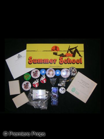 This is a lot of collectible pins and items from comedy films such as 'Dead Men Don't Wear Plaid,' 'Summer School,' 'The Blues Brothers,' and 'Rabbit Test.'