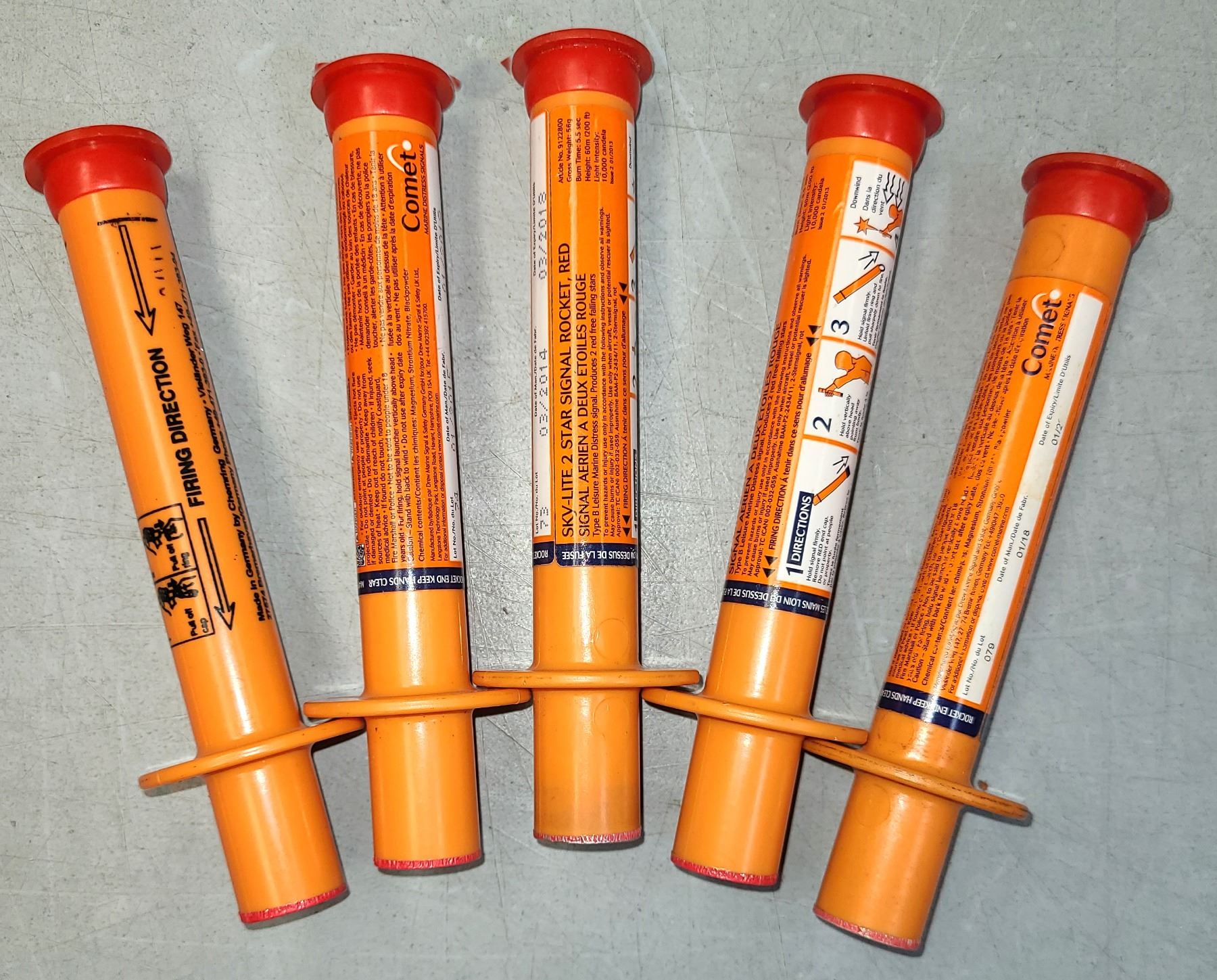 Comet Sky-Lite 2 Star Red Aerial Rockets Lot of 5 Flares - Made in Germany .