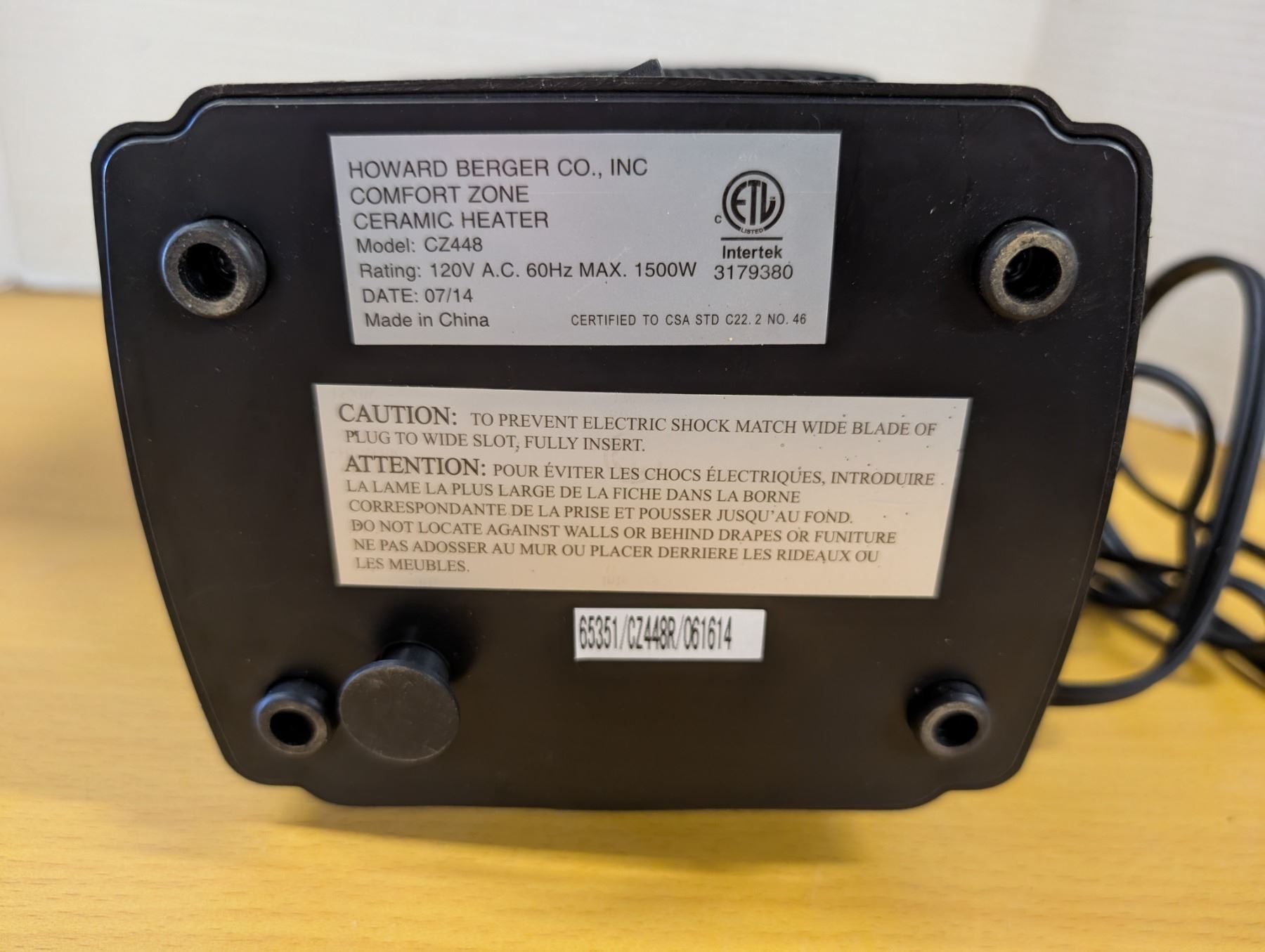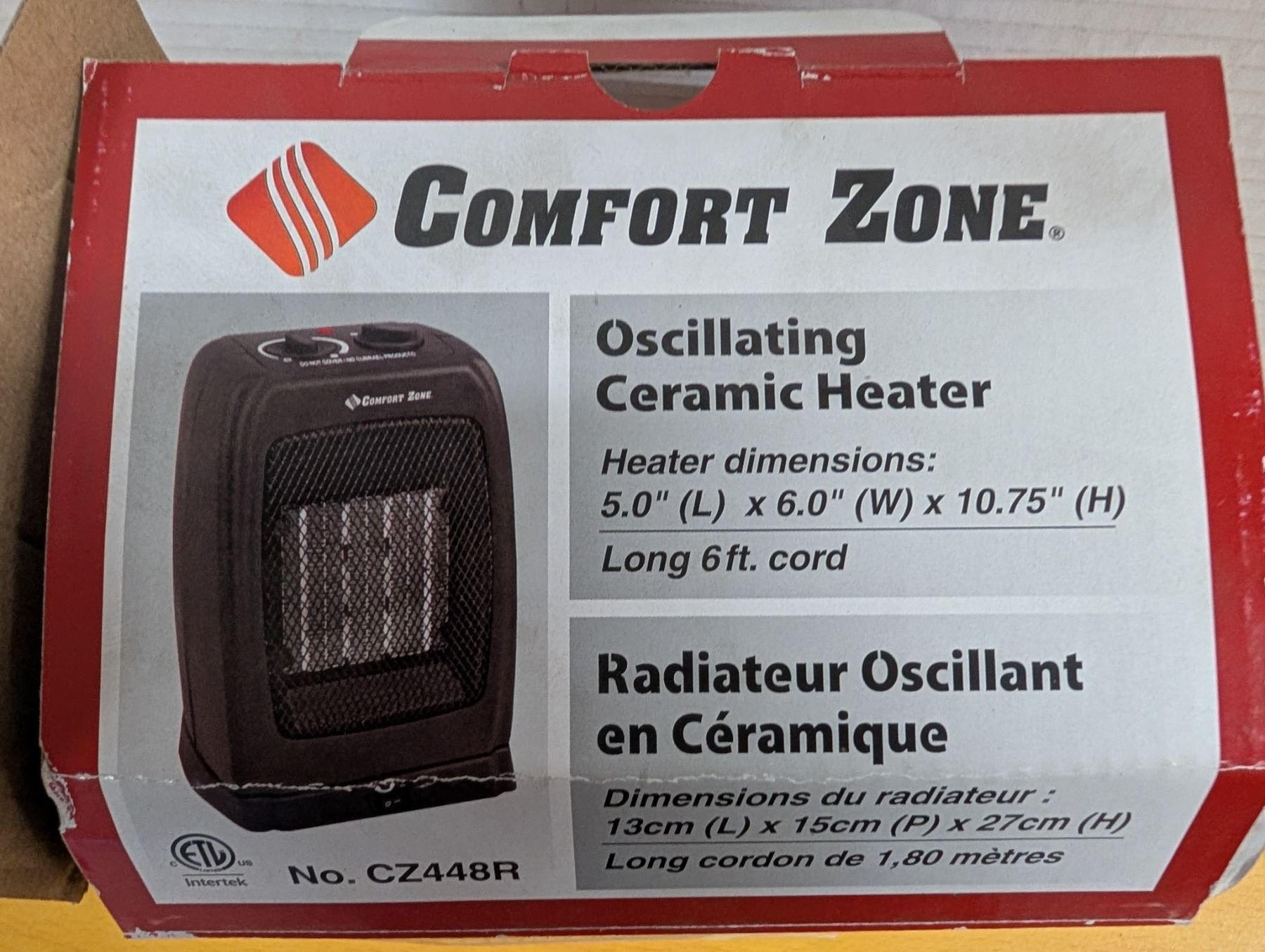 Comfort Zone Oscillating Ceramic Heater w/ Original Box (Not Tested)