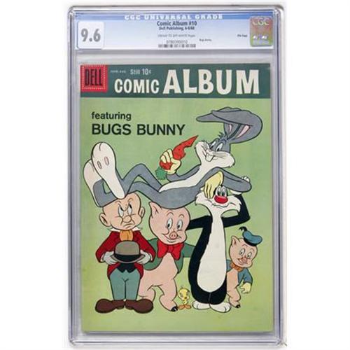 <B>Comic Album #10 Bugs Bunny - File Copy (Dell, 1960) CGC NM+ 9.6 Cream to off-white pages.</B></I> Bugs Bunny. Overstreet 2007 NM- 9.2 value = $55. CGC census 12/07: 2 in 9.6, none higher.<BR><BR><b>Shipping:</b> Comics - Slabbed (certified) (<a target="_blank" href="http://www.heritageauctions.com/common/shipping.php">view shipping information</a>)