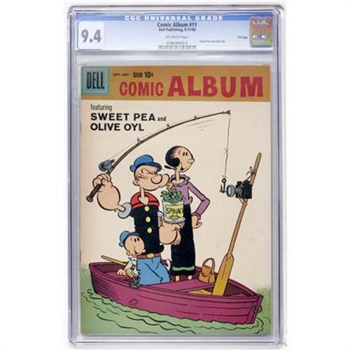 <B>Comic Album #11 Sweet Pea and Olive Oyl - File Copy (Dell, 1960) CGC NM 9.4 Off-white pages.</B></I> Sweet Pea and Olive Oyl. Overstreet 2007 NM- 9.2 value = $65. CGC census 12/07: 2 in 9.4, 0 higher.<BR><BR><b>Shipping:</b> Comics - Slabbed (certified) (<a target="_blank" href="http://www.heritageauctions.com/common/shipping.php">view shipping information</a>)