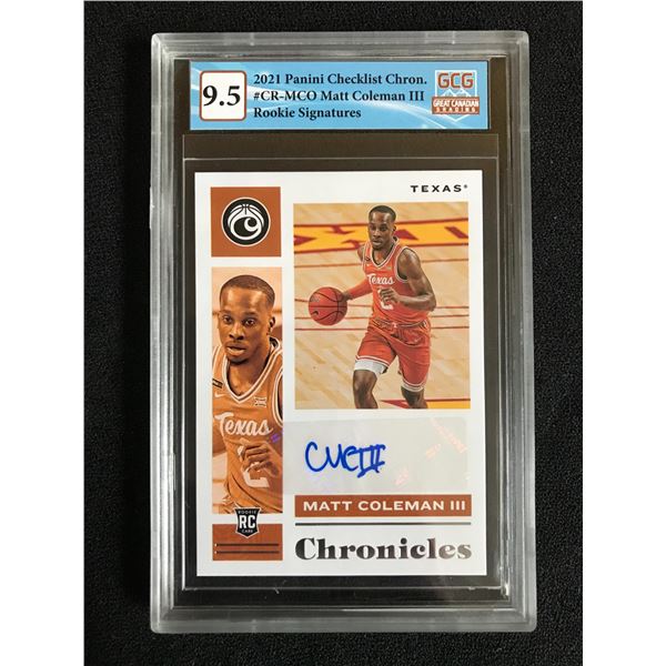 2021 PANINI CHRONICLES MATT COLEMAN III ROOKIE SIGNATURES (GCG 9.5)