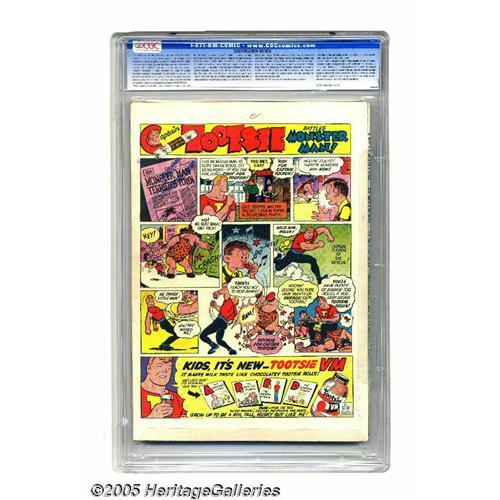 <B>Comic Cavalcade #8 (DC, 1944) CGC VF/NM 9.0 Off-white to white pages.</B></I> Gorgeous copy of a book that may be rarer than its Gerber ""4"" would indicate. After all, CGC has certified just six unrestored copies to date. This one currently ranks as the second highest-graded. Frank Harry cover, with interior art by H. G. Peter and Paul Reinman. Overstreet 2005 VF/NM 9.0 value = $1,185; NM- 9.2 value = $1,600. CGC census 9/05: 1 in 9.0, 1 higher. <I>From the Aviator Collection</B></I>. <BR><BR><B>Important notice:</B> Heritage usually auctions material at the rate of 200-250 lots per hour. On some occasions eBay Live bid software or the Internet may not be able to keep up with the pace of the auction. We recommend placing a realistic absentee bid now as insurance to avoid disappointment. Occasionally the auctioneer may eliminate or reject an eBay Live bid, and the auctioneer may also reopen a lot after the close of the eBay live bidding (usually because we missed an audience bid), and may reject your bid even if it shows you as the winning bidder. By bidding via eBay Live, you agree that Heritage may award the lot to another bidder at its sole discretion under the circumstances described above or any other reasonable circumstances. Since eBay bids are not shown to us until we open the lot on the floor, we treat those bids just like floor bids. In most cases the floor responds before the eBay bid is presented to us, due to Internet lag time, so for consistency we have made it a policy that floor bids are always considered first over tie eBay live bids. Also please note that all Heritage lots purchased through eBay Live carry a 20% Buyer's Premium. Please make sure you read the Terms and Conditions before you bid. This lot is being auctioned in conjunction with a live floor auction by Heritage Galleries & Auctioneers. All final auction and invoice information will be supplied by Heritage Galleries & Auctioneers, and all other information should be considered prelim