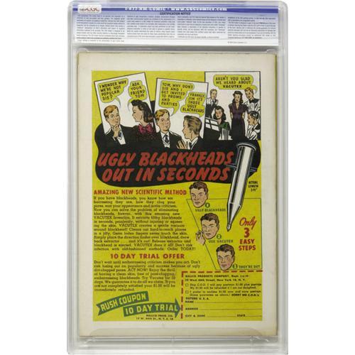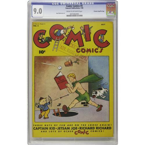 <B>Comic Comics #4 Crowley Copy/File Copy (Fawcett, 1946) CGC VF/NM 9.0 Cream to off-white pages.</B></I> Featuring art by Basil Wolverton. Has a faint "Checking Copy" stamp on the front cover. Overstreet 2006 VF/NM 9.0 value = $122; NM- 9.2 value = $160. CGC census 10/06: 1 in 9.0, 1 higher.<BR><BR><b>Shipping:</b> Slabbed Comic (<a target="_blank" href="http://www.heritageauctions.com/common/shipping.php">view shipping information</a>)