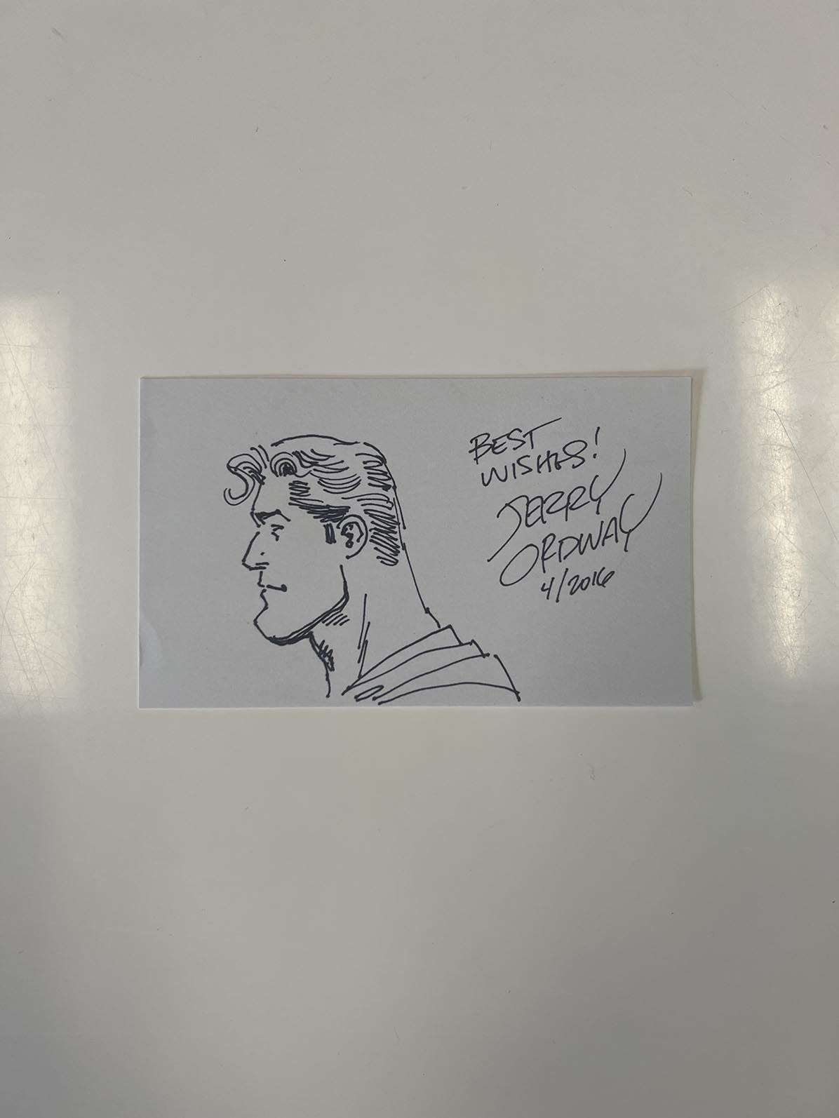 Comic artist Jeremiah Ordway signed note with sketch.5x3 inches