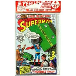 Comicpac Group (DC, 1966) Condition: Average VF/NM. This is a group of two unopened packs of four DC comics from 1966. The A-1 pac includes Superman #182 (1st Silver Age appearance of the Toyman), Aquaman #25, Blackhawk #216, and Capt. Storm #5. The B-3 pac includes Superman's Pal Jimmy Olsen #91, Batman #179 (2nd Silver Age appearance of the Riddler), Flash #159, and Adventures of Jerry Lewis #93. These sets of comics are over 40 years old, yet appear almost as when printed. Overstreet 2003 VF/NM 9.0 value for group = $478; NM 9.4 value for group = $600. 2 items Important notice: Heritage usually auctions material at the rate of 200-250 lots per hour. On some occasions eBay Live bid software or the Internet may not be able to keep up with the pace of the auction. We recommend placing a realistic absentee bid now as insurance to avoid disappointment. Occasionally the auctioneer may eliminate or reject an eBay Live bid, and the auctioneer may also reopen a lot after the close of the eBay live bidding (usually because we missed an audience bid), and may reject your bid even if it shows you as the winning bidder. By bidding via eBay Live, you agree that Heritage may award the lot to another bidder at its sole discretion under the circumstances described above or any other reasonable circumstances. Also please note that all Heritage lots purchased through eBay Live carry a 20% Buyer's Premium. Please make sure you read the Terms and Conditions before you bid.