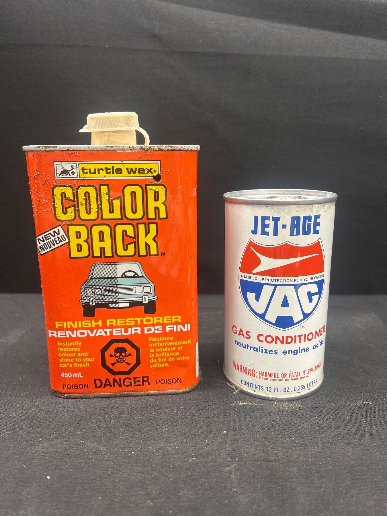 Vintage Turtle Wax Finish Restorer and Jet-Ace Gas Conditioner Tins