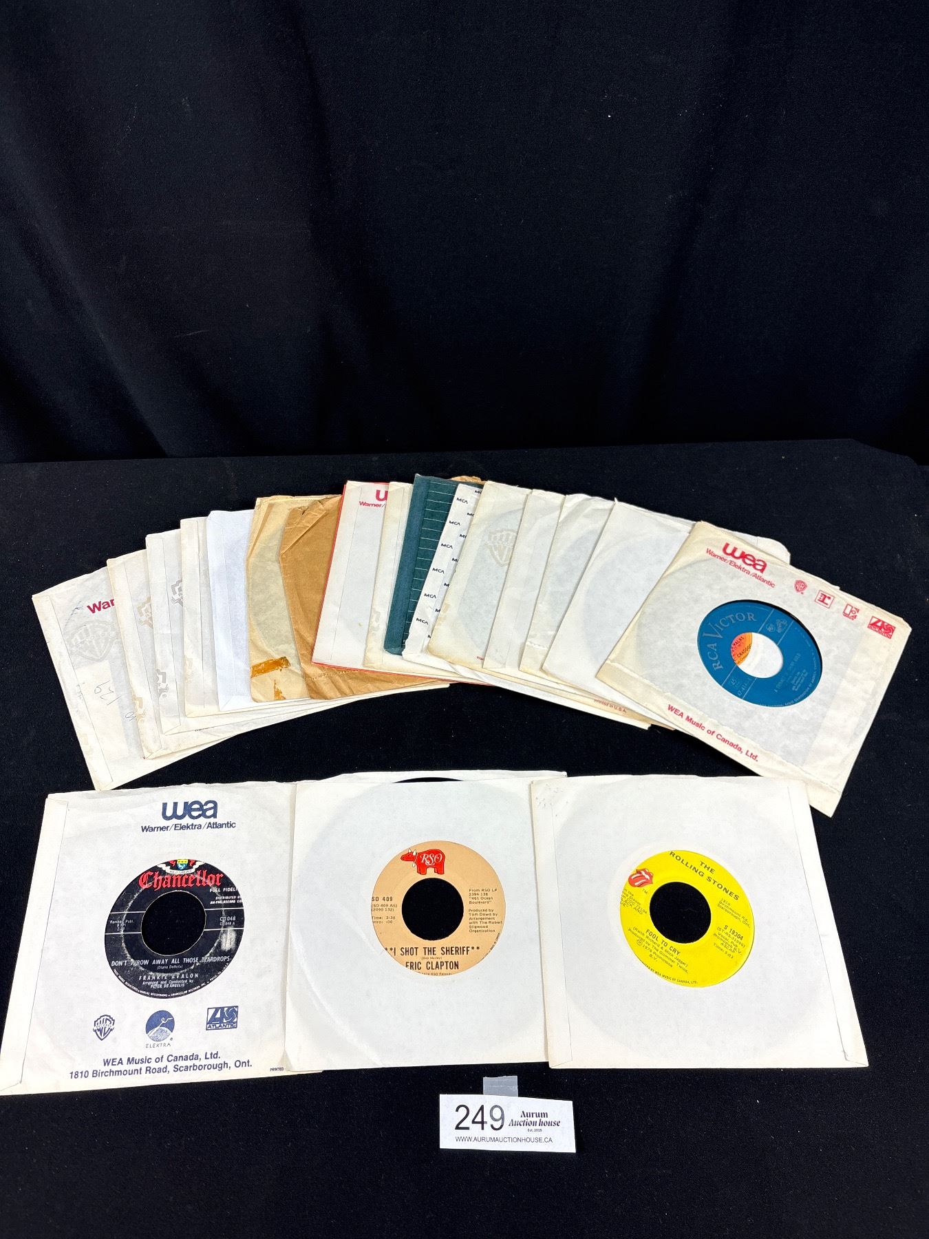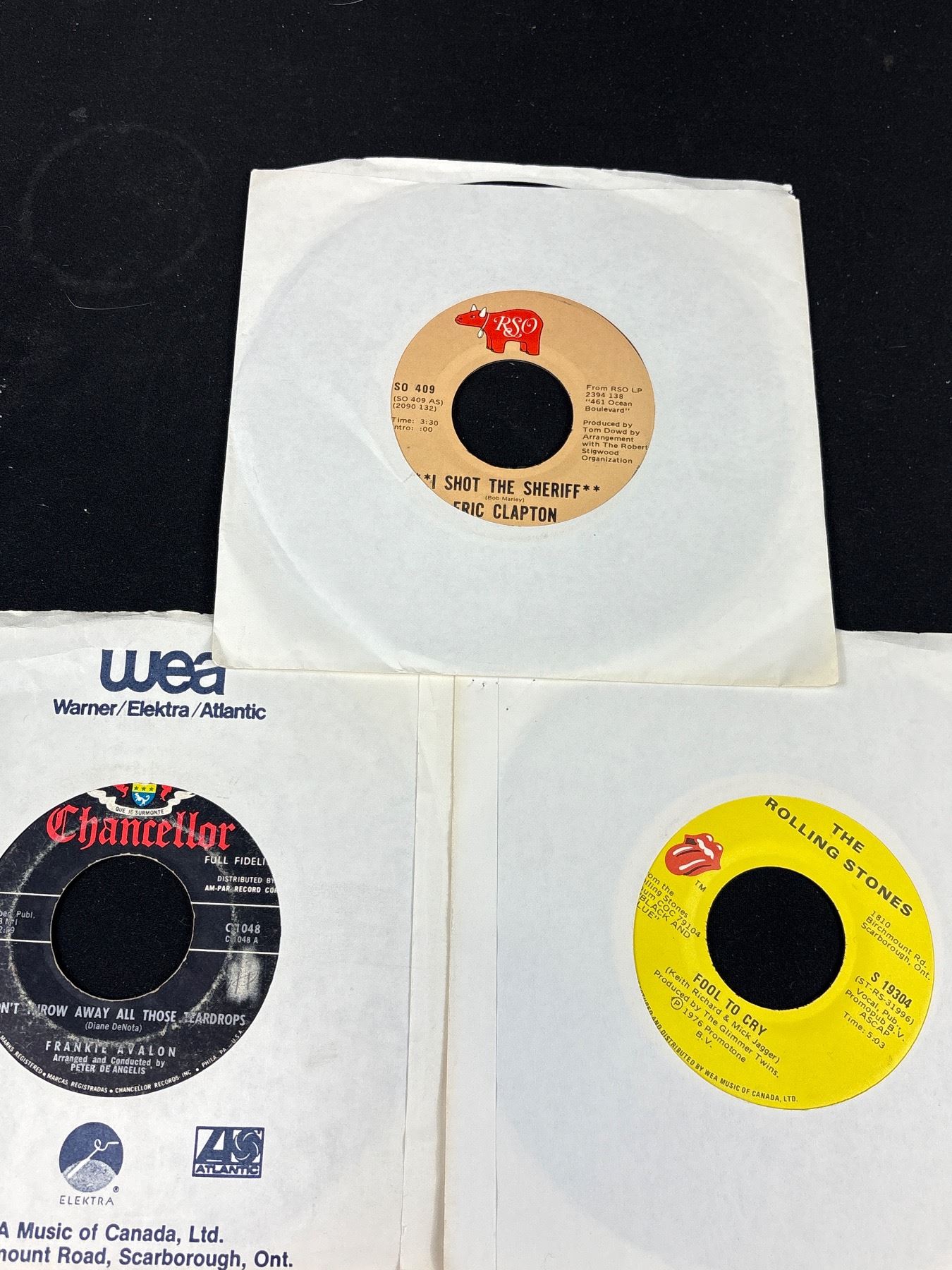 Lot of 20 45 Records in Sleeve The Rolling Stones, Eric Clapton, Frankie Alvalon, etc.