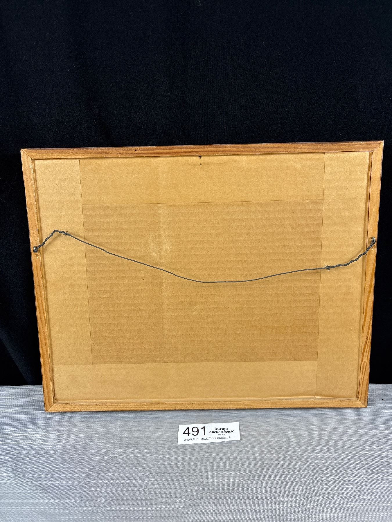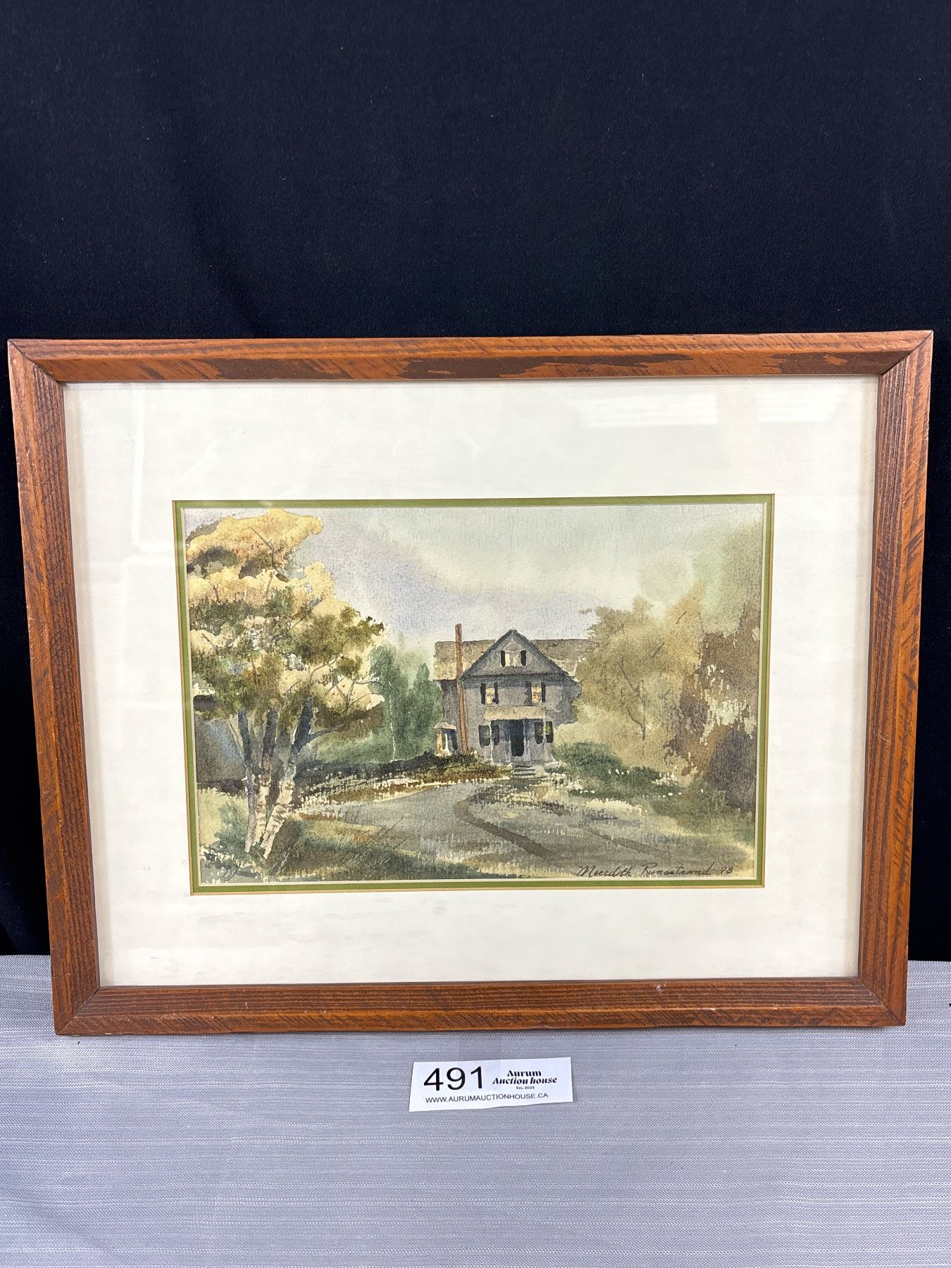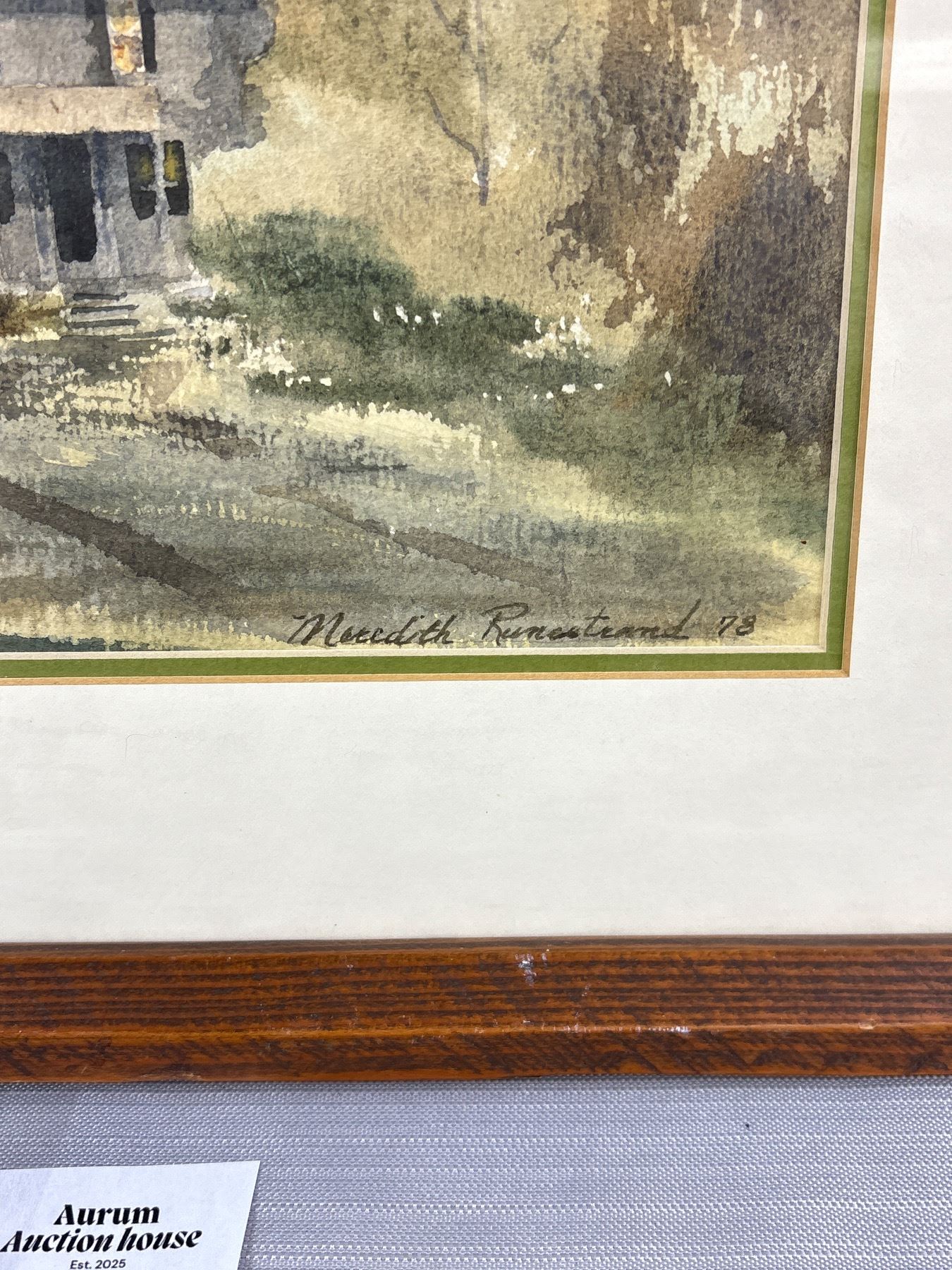 Vintage Oak Wood Framed Watercolour Painting Signed Meredith Runestrand / 78