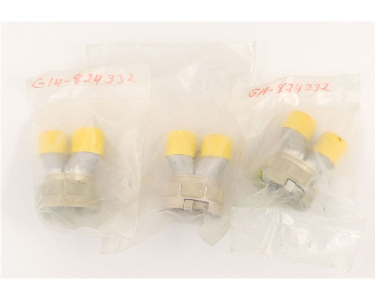 Three unused spare bulkhead connectors. Each connector measures approximately 3.5? long with two covered intakes leading into the connecting collar. Each is still sealed in its packaging. In fine condition.
